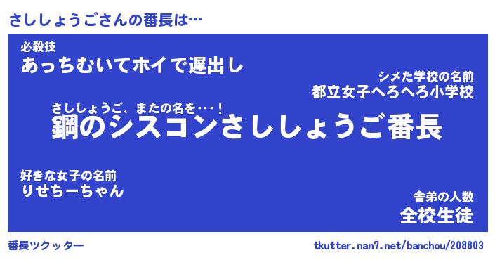 | 伝説のあだ名 | 『封印されしスナイパーさししょうご』 |