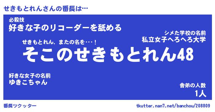 | ヘコむあだ名 | 『せきっふぃ~』『豆乳』 |