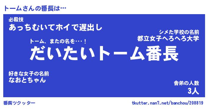 | ヒーロー風カッコイイあだ名 | 『スーパートーム』『ウルトラトームマン』 |