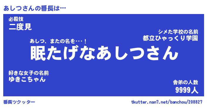 | 意味不明あだ名 | 『ペロリンあしつ』『あしつフォーエバー』 |