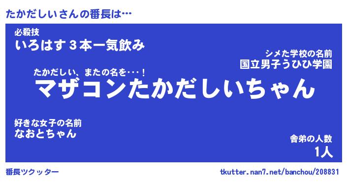 | ヒーロー風カッコイイあだ名 | 『スーパータカダシイ』『黄金騎士タカ』 |