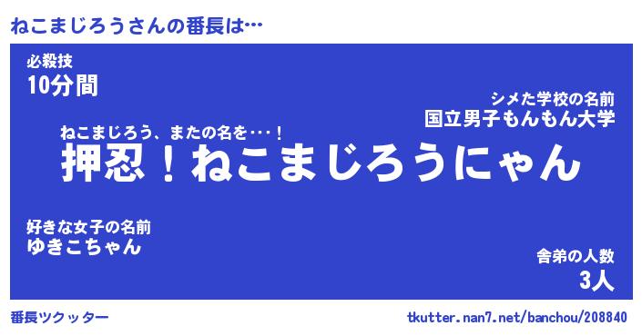 | 伝説のあだ名 | 『封印されしスナイパーねこまじろう』 |