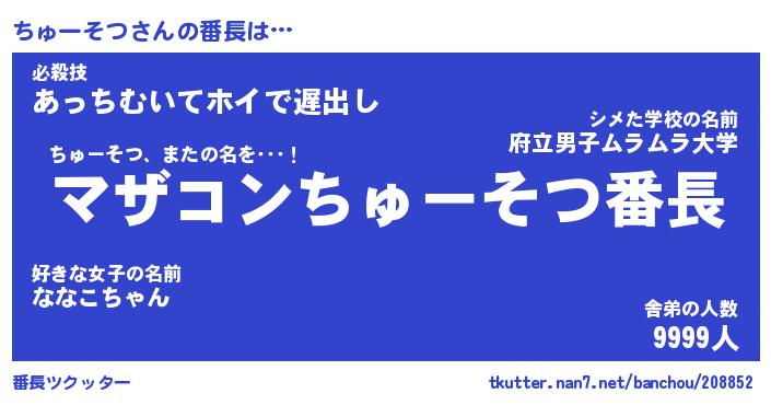 | ファンタジー風あだ名 | 『チュフェル』『エターナルチューソツー』 |