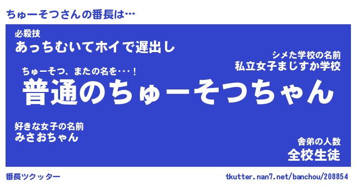 | 肩書あだ名 | 『ちゅーそつ店長』『ちゅーそつ大統領』 |