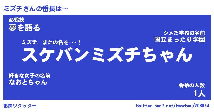 | 意味不明あだ名 | 『ペロリンミズチ』『ミズチフォーエバー』 |