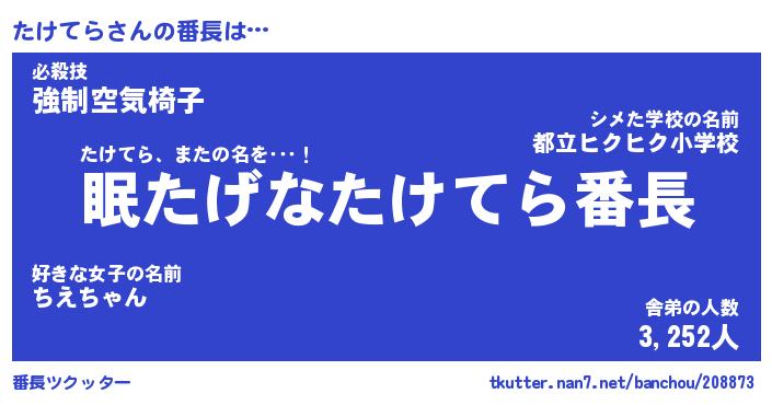 | 意味不明あだ名 | 『ペロリンたけてら』『永久保存たけてら』 |