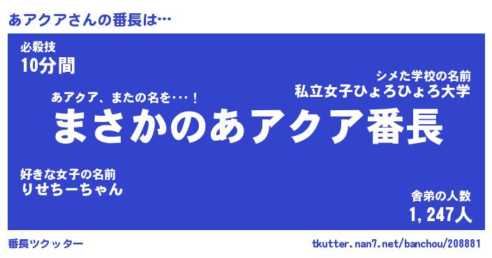 | 欧米人風あだ名 | 『マイケルあアクア』『ウサインあアクア』 |