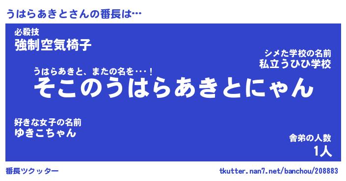 | 恥ずかしいあだ名 | 『プリティーうはらあきと』『うはっちょ』 |