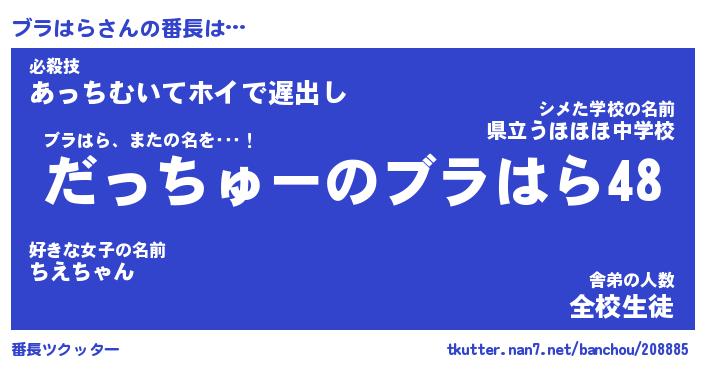 | ヘコむあだ名 | 『ブラふぇ~』『牛乳』『ブラ太郎』 |