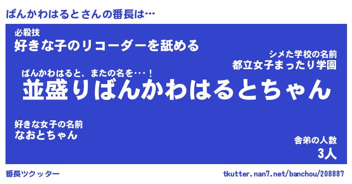 | 意味不明あだ名 | 『ペロリンばんかわはると』 |