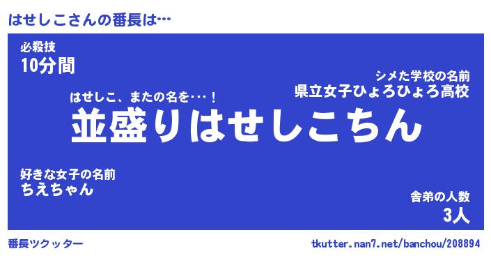 | 意味不明あだ名 | 『ペロリンはせしこ』『永久保存はせしこ』 |