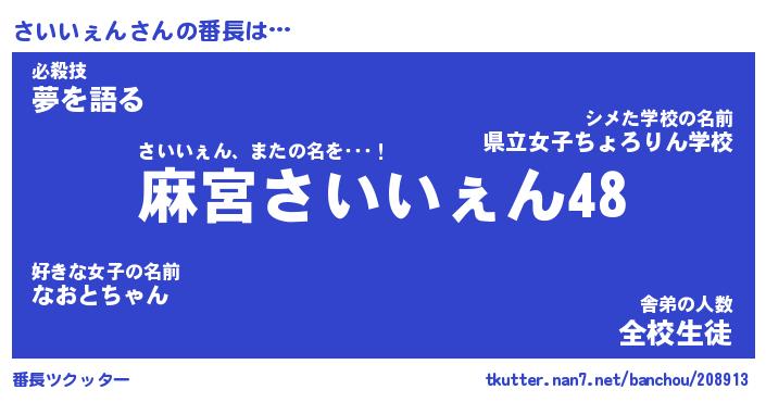 | 欧米人風あだ名 | 『マイケルさいいぇん』 |