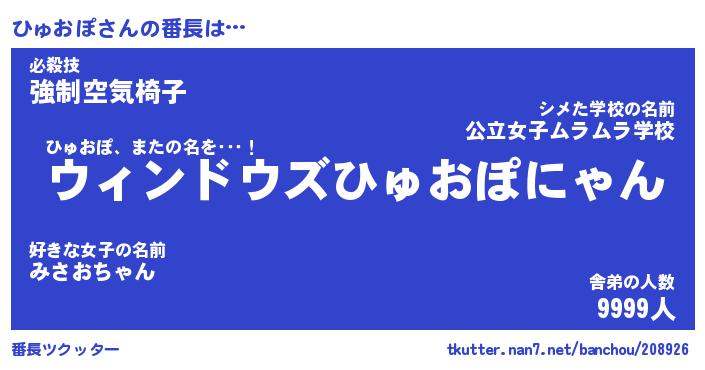 | ピコ太郎風あだ名 | 『ヒコ六郎』『ピヒ八郎』『ヒュ六郎』 |