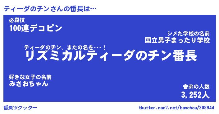 | 伝説のあだ名 | 『伝説のスナイパーティーダのチン』 |