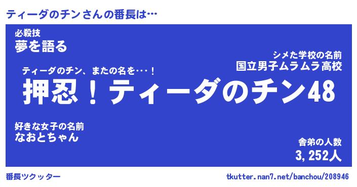 | ヘコむあだ名 | 『ティにゅー』『牛乳』『ティ太郎』 |