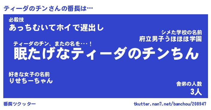 | ポケモン風あだ名 | 『ティチュウ』『ティーダネ』 |