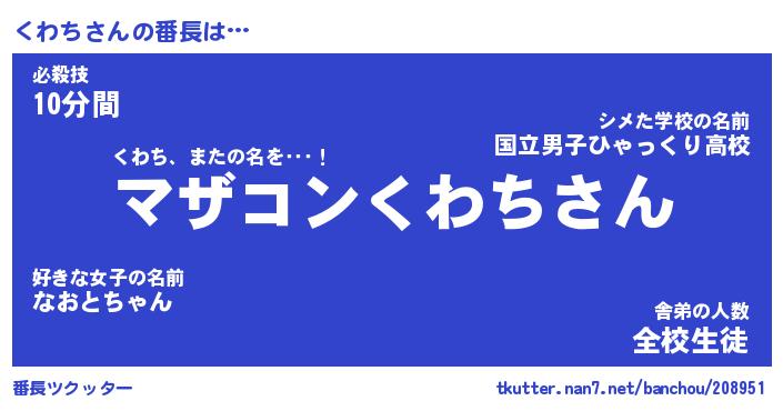 | ヒーロー風カッコイイあだ名 | 『スーパークワチ』『ウルトラくわちマン』 |