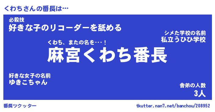 | 肩書あだ名 | 『くわち御曹司』『くわち総理大臣』 |