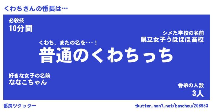 | 意味不明あだ名 | 『ペロリンくわち』『くわちフォーエバー』 |