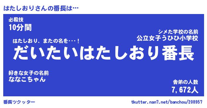 | 肩書あだ名 | 『はたしおり社長』『はたしおり総理大臣』 |