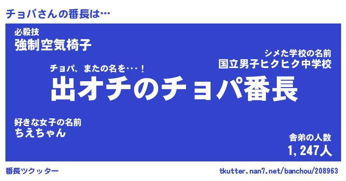 | 肩書あだ名 | 『チョパ店長』『チョパ総理大臣』 |