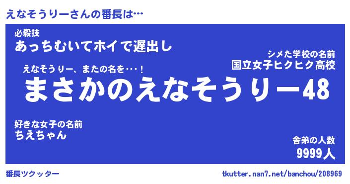| 伝説のあだ名 | 『伝説のスナイパーえなそうりー』 |