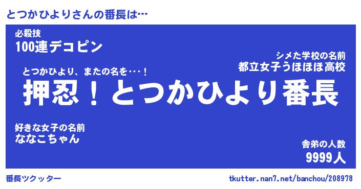 | ヒーロー風カッコイイあだ名 | 『スーパートツカヒヨリ』『魔戒騎士トツ』 |