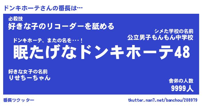 | 意味不明あだ名 | 『ペロリンドンキホーテ』 |
