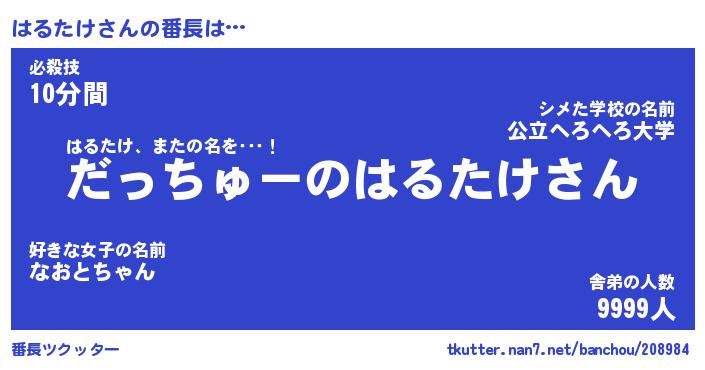 | 意味不明あだ名 | 『ペロリンはるたけ』『永久保存はるたけ』 |