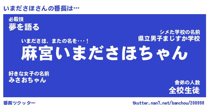 | 肩書あだ名 | 『いまださほ御曹司』『いまださほ大統領』 |