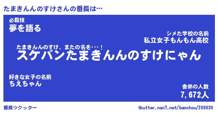 | ヒーロー風カッコイイあだ名 | 『スーパータマキンンノスケ』 |