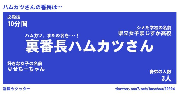 | ファンタジー風あだ名 | 『ハムフェル』『エターナルハムカツー』 |