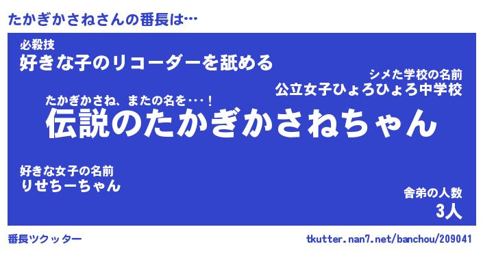 | 伝説のあだ名 | 『伝説のスナイパーたかぎかさね』 |