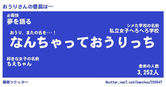 | ヒーロー風カッコイイあだ名 | 『スーパーオウリ』『ウルトラおうりマン』 |