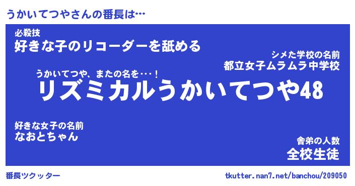 | 男性向けラノベタイトル風あだ名 | 『うかいてつやの憂鬱』 |