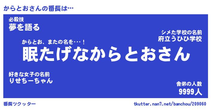 | 肩書あだ名 | 『からとお店長』『からとお国家主席』 |