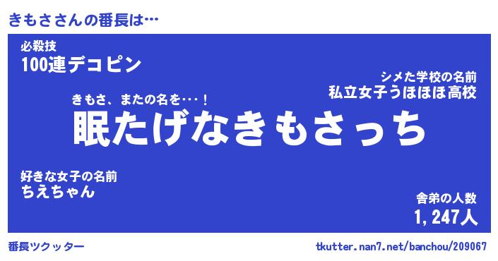 | ヒーロー風カッコイイあだ名 | 『スーパーキモサ』『ウルトラきもさマン』 |