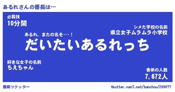 | ヒーロー風カッコイイあだ名 | 『スーパーアルレ』『ウルトラあるれマン』 |