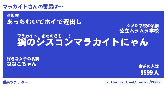 | ファンタジー風あだ名 | 『マラフェル』『エターナルマラカイトー』 |