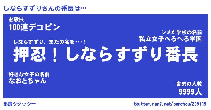 | 伝説のあだ名 | 『封印されしスナイパーしならすずり』 |