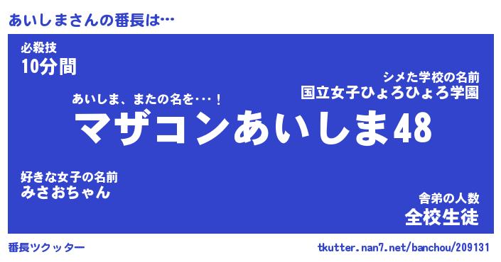 | 意味不明あだ名 | 『ペロリンあいしま』『永久保存あいしま』 |