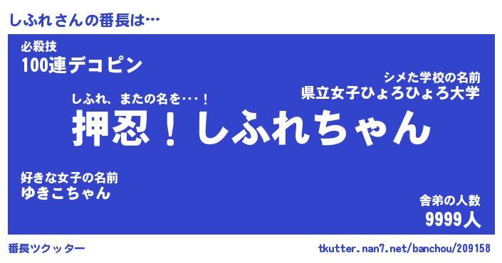 | ヘコむあだ名 | 『しふにー』『なまこ酢』『しふ太郎』 |
