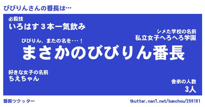 | 意味不明あだ名 | 『ペロリンびびりん』『永久保存びびりん』 |