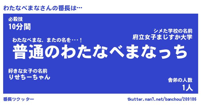 | 肩書あだ名 | 『わたなべまな社長』『わたなべまな班長』 |