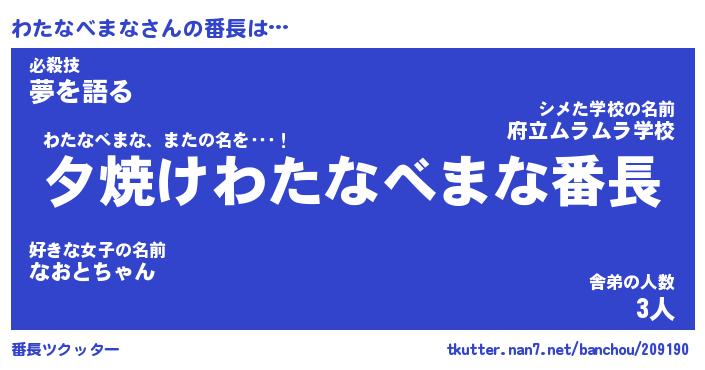 | ポケモン風あだ名 | 『ワタチュウ』『ワタナダネ』 |