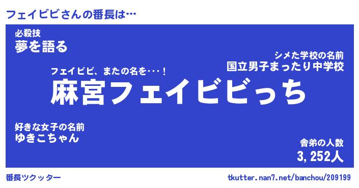 | ヒーロー風カッコイイあだ名 | 『スーパーフェイビビ』『銀牙騎士フェ』 |