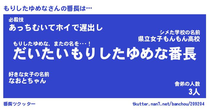 | 恥ずかしいあだ名 | 『プリティーもりしたゆめな』『もりちん』 |