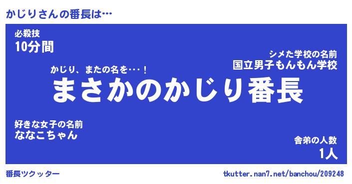 | 2回繰り返すあだ名 | 『かじかじ』『かかじじ』『くたくた』 |