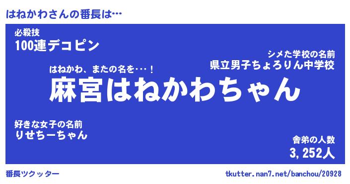 | 意味不明あだ名 | 『ペロリンはねかわ』『永久保存はねかわ』 |
