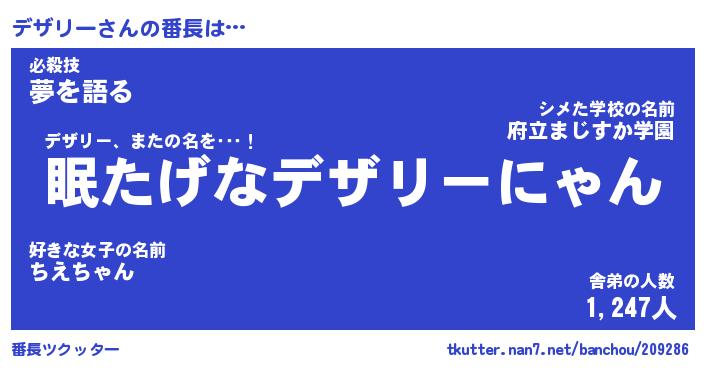| 意味不明あだ名 | 『ペロリンデザリー』『永久保存デザリー』 |